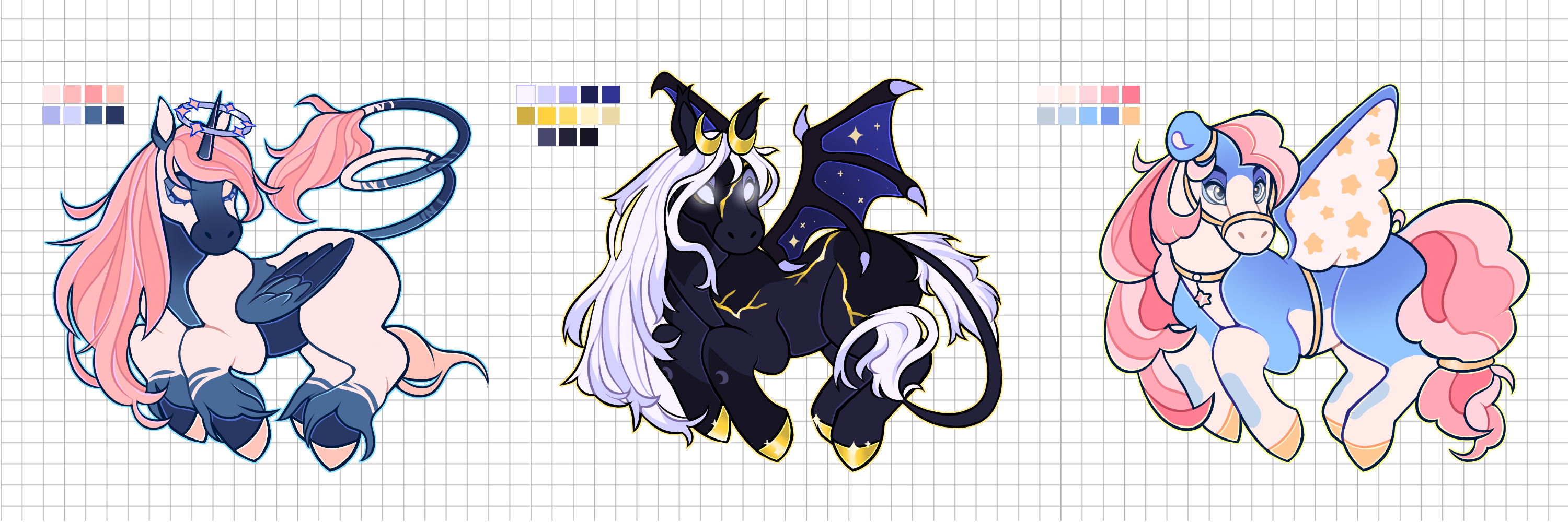PSD File containing two bases (mare and stallion), 5 hairstyles, 4 tails, wings and unihorn features.